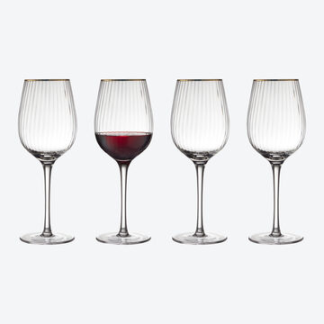Leurs formes délicates et le relief cannelé sophistiqué confèrent aux verres une allure gracieuse et permettent aux boissons de briller d'un éclat enchanteur. Le bord mince, finement poli avec une bande dorée discrète, rend la dégustation des plus agréables.