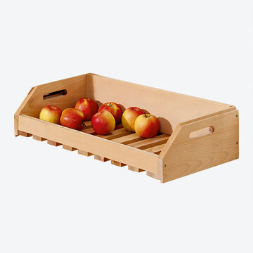 Avec cette étagère empilable mobile, utilisez n'importe quel coin libre comme espace de rangement supplémentaire. Les bouteilles de vin y sont bien rangées en toute sécurité dans les orifices pour le goulot. Bien espacées, on peut les prendre de n'importe quel endroit. Dans les compartiments pour denrées alimentaires vous entreposerez de façon bien ordonnée et accessible les fruits, les légumes et vos autres réserves. Des baguettes au sol favorisent la libre circulation de l'air, les raccords rainurés fraisés permettent un empilement en toute sécurité, des poignées sur les côtés facilitent le transport. Hêtre massif non traité, 60 x 30 x 16 cm de hauteur, poids 2,5 kg, raccords vissés solides pour une utilisation durable, jusqu'à 10 étagères peuvent être empilées les unes sur les autres en toute sécurité, chacune d'elle pouvant supporter 25 kg.