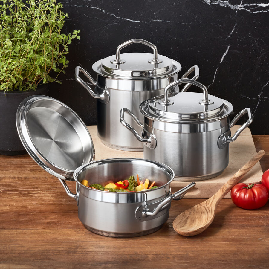 • Image du produit pour 'Faitout à légumes : mini-faitouts originaux en acier inoxydable pour des résultats de cuisson parfaits'