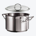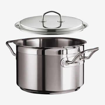 Le fond multicouche de 8,8 mm d'épaisseur avec un noyau d'aluminium encapsulé de 6 mm emmagasine et répartit la chaleur de manière absolument uniforme et la maintient constante. La forme arrondie sans soudure permet de remuer facilement, rien ne colle. Le couvercle à rigole aromatique ferme bien hermétiquement. Optimal pour les petites portions.