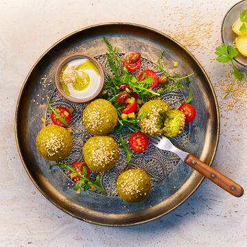 • Image du produit pour 'Falafels marocains à la sauce sésame tahini sur roquette'