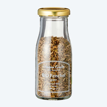 Les graines de fenouil contiennent de l'huile essentielle aux arômes anisés. Leur goût épicé enrichit pain, pâtisseries, plats de viande et de poisson. En infusion, elles soulagent toux et troubles digestifs. S'accordent avec l'anis et le thym.