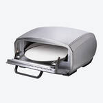Corps en inox, 51 x 50 x 29,5 cm (l/p/h), hauteur dans la chambre de cuisson : env. 7 cm, poids 15 kg. Pierre à pizza en cordiérite Ø 33 cm (rotative), porte en verre trempé triple épaisseur. Écran tactile, éclairage intérieur, puissance : 220 - 240 V, minuterie réglable (1-60 minutes), câble 90 cm, livré avec pelle à pizza et livret de recettes.