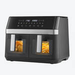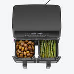Avec deux chambres de cuisson séparées de 5,5 l chacune, vous pouvez frire, cuire ou rôtir simultanément - idéal pour préparer, par exemple, poisson et légumes ou frites et poulet en même temps. En retirant le séparateur central, vous profitez d'un grand volume de 14 l - parfait pour les repas en famille ou entre amis. Avec une circulation d'air chaud intelligente pour une cuisson homogène, une mise en chauffe rapide et 10 programmes (par ex. pour frites, poulet, poisson, légumes, steak), chaque plat est un succès sur simple pression d'un bouton. La température et le temps peuvent également être réglés manuellement de 50 à 200 °C par incréments de 5 °C. La cuisson quasi sans matière grasse permet de savourer pleinement vos plats tout en faisant attention à votre alimentation. Avec seulement 39 dB, cette friteuse à air est en plus ultra silencieuse - idéale pour les cuisines ouvertes et des moments de cuisine en toute tranquillité.