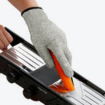Le tissu souple de ce gant, résistant aux coupures et breveté, en fibres composites de haute technologie tient tête à toutes les coupures dangereuses. Vous pouvez enfin effectuer tranquillement les tâches difficiles en cuisine exigeant le maniement de couteaux tranchants, râpes, mandolines ou rabots de cuisine. Le gant en tissu de sécurité souple, agréablement léger, épouse vos mains à chaque tâche. Pratique, il convient aussi bien aux droitiers qu'aux gauchers. Pour un nettoyage occasionnel en profondeur, il passe à 30 °C à la machine à laver. Gant de sécurité contrôlé de résistance maximum de niveau 5, il est autorisé pour l'utilisation professionnelle (pas pour les couteaux crantés). Léger, souple, étirable, perméable à l'air, pour droitiers et gauchers.