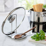 Les cuillères, spatules et autres ustensiles de cuisine trouvent leur place d'un côté, les couvercles de casseroles et de poêles de l'autre. Tout est ainsi toujours à portée de main pendant que vous cuisinez, le plan de travail restant propre et rangé. Support adapté à tous les couvercles de casseroles et de poêles Ø 16-32 cm. Peut être rangé de manière peu encombrante grâce au support à couvercle amovible.
