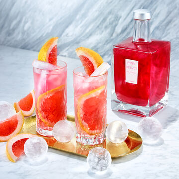 1 Verser le gin Pink Velvet, le sirop de grenadine et le jus de citron avec quelques glaçons dans un shaker à cocktail et secouer vigoureusement pendant 30 secondes.