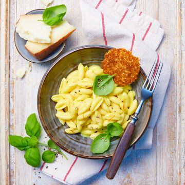 2 Cuire les gnocchetti al dente dans de l'eau salée (10 g/l). Ajouter un peu d'eau de cuisson des pâtes au fromage afin d'obtenir une sauce onctueuse. Égoutter brièvement les pâtes et les mélanger immédiatement à la sauce.