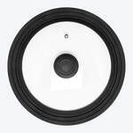Couvercle en verre dur avec bord gradué en silicone, pour récipients de Ø 24-28 cm, valve à vapeur d'eau, résistant à la chaleur jusqu'à +110 °C, lavable au lave-vaisselle.