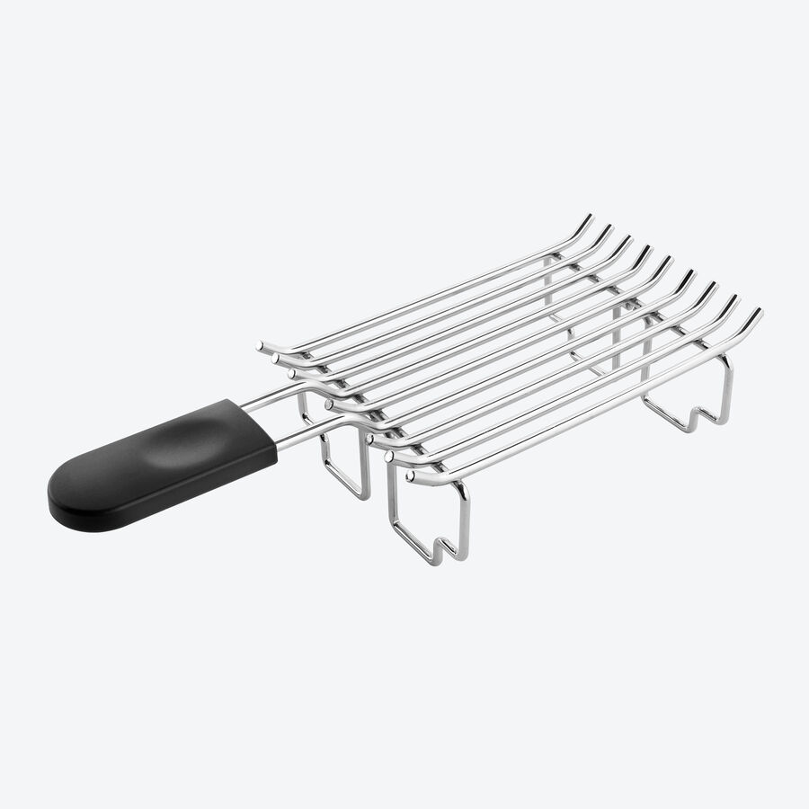 La construction en fonte d'aluminium, solide, promet une durée de vie presque illimitée. Des plaques chauffantes à parois épaisses et le centrage automatique des toasts assurent un grillage régulier des deux côtés. Dans les grandes fentes (3,3 x 14,5 cm), vous pouvez griller les tranches extra longues, des sandwichs bien garnis et aussi des demi-bagels. Grâce à la fonction spéciale, vous dorerezr les petits pains et les muffins sur un seul côté seulement.