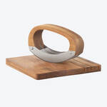 Hachoir berceuse avec planche à découper - lame triple en acier inoxydable, poignée en acacia, planche avec rainures, 18 × 18 × 1,5 cm (l/p/h)