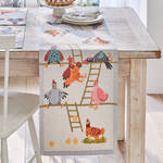 Joyeux chemin de table suédois motif poulailler en jacquard, tissage traditionnel