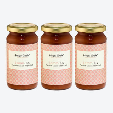 Le Jus de viande est la base de toute sauce au goût intense et aromatique, indispensable à l'art culinaire haut de gamme. Plus puissants et aromatiques que les simples fonds, ces jus sont le fruit d'une élaboration minutieuse, issus d'os et légumes grillés et de fonds de viande qui mijotent environ douze heures! La saveur du jus de viande et des arômes grillés atteint alors une très forte concentration. On en écume plusieurs fois la mousse et l'arrose de vin rouge ou blanc, selon la viande. Après refroidissement, la graisse qui surnage est retirée. Il suffit ensuite de lier le jus avec du beurre, de la farine ou de la fécule. Selon l'emploi, la sauce sera affinée avec de la crème fraîche, un alcool (par exemple du porto, du cognac ou du Noilly Prat), des herbes ou épices. Ces jus sont également délicieux pour cuisiner vos plats en sauce, vos poêlées de champignons et légumes ou vos émincés. Nos jus de viandes proviennent d'une fabrication artisanale professionnelle et sont indispensables comme base de cuisine haut de gamme. Uniquement des ingrédients purs et naturels, sans conservateurs ni colorants.