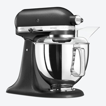 Fabriquée entièrement en métal, cette machine est infiniment robuste avec une technologie supérieure et des performances énormes. Le moteur puissant entraîne silencieusement l'agitateur et tous les accessoires via un engrenage précis en métaux de haute qualité. Vous disposez de 10 niveaux de vitesse de travail, de 58 à 220 tr/min. Grâce à son entraînement direct incroyablement puissant, le KitchenAid, bien qu'il affiche une puissance de 300 W, est nettement plus puissant, plus économique et plus durable que les robots de cuisine standards avec trois fois plus de besoins énergétiques. Même sous de lourdes charges, la vitesse de travail sélectionnée reste constante. Ce qui rend ce robot exceptionnel, c'est son mouvement planétaire caractéristique : l'axe moteur décrit un mouvement circulaire pendant que l'accessoire de mélange guidé par cet axe tourne dans l'autre sens, tout est alors parfaitement incorporé.