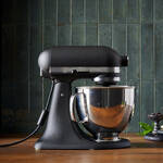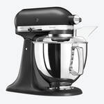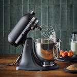 Coloris truffe noire (noir mat) 24 x 37 x 36 cm (l/p/h), poids 12 kg, pieds antidérapants, 230 V/300 W, câble 1 m, livré avec 2 bols mélangeurs en inox (4,8 l et 3 l), couvercle verseur anti-éclaboussure, crochet pétrisseur, mélangeur, batteur à bord flexible, fouet à fils.