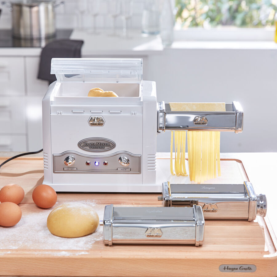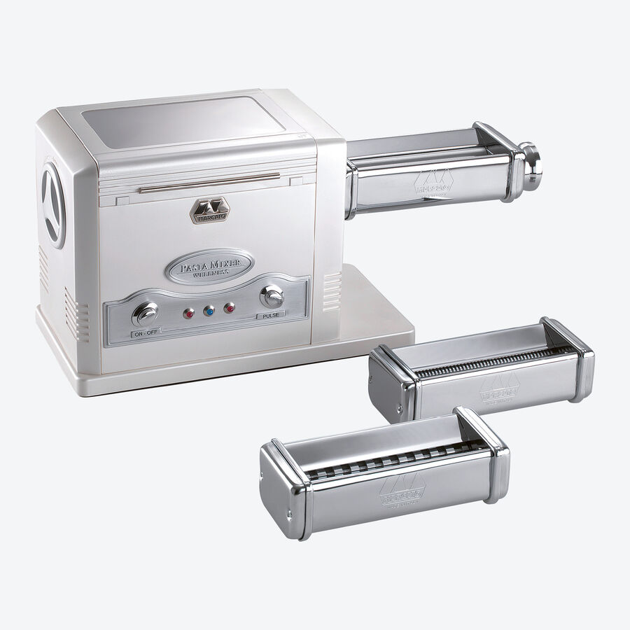 Grâce à sa longue expérience comme premier fabricant italien de machines à pâtes, Marcato a développé cette combinaison parfaite. En seulement 3 minutes, cet appareil merveilleux permet d'obtenir 500 g de pâte parfaite comme pétrie à la main : compacte, élastique et homogène avec tous les avantages des pâtes faites maison. Le mélange et le pétrissage sont entièrement automatiques. 500 g de pâte sont produits en une seule opération. Vous fabriquez jusqu'à 10 kg de pâte en une heure. Parfait aussi pour la pâte à pizza, à pain ou à biscuits.