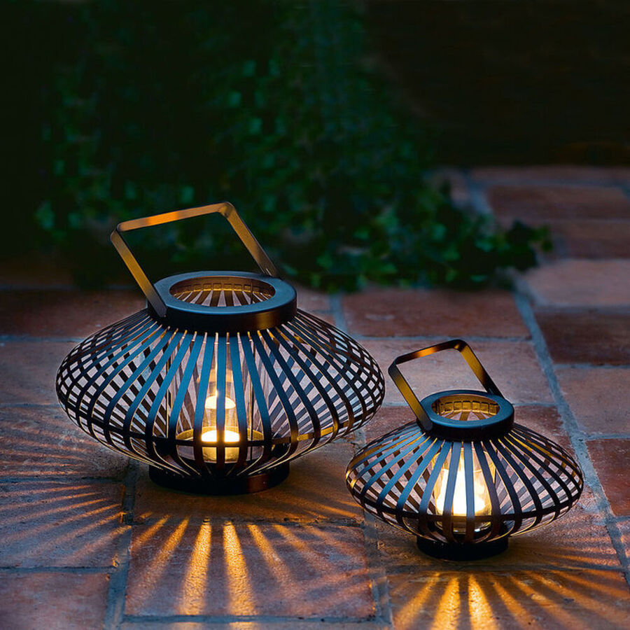 Alors qu'elles étaient jadis une source de lumière quotidienne dans les temples et les domaines, elles sont aujourd'hui un élément on ne peut plus décoratif. La corbeille en métal, auparavant une protection nécessaire de la flamme, produit ce jeu vivant d'ombres chinoises. Dans la maison, sur la terrasse ou dans le jardin, leur lueur romantique est un enrichissement décoratif incontestable. Les lamelles en acier laqué sont soudées à la main. Les paniers en verre pour bougies chauffe-plat, normales ou grandes, protègent les flammes des bougies du vent. Vous transportez ces photophores ou les suspendez sûrement et facilement avec la poignée.