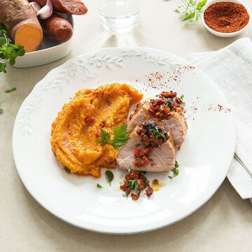 C'est dans la Sierra de Alcarama, à 1.500 m d'altitude, que Carlos Martínez Izquierdo élève une race de cochon particulière pour fabriquer son chorizo très prisé. Ses porcs Duroc grandissent dans des conditions respectueuses des besoins de l'espèce, avec une nourriture entièrement naturelle. La marbrure bien prononcée de la viande de cette ancienne race de porcs est un support gustatif déterminant. La viande aromatique est épicée avec du sel, de l'ail et du paprika d'Estrémadure, doux ou très relevé. Le chorizo mûrit ensuite pendant au moins trois semaines à l'air pur d'altitude de la Sierra. Ces chorizo raffinés parfaitement épicés ne sont pas seulement de délicieux tapas (entrées espagnoles), coupés en fines tranches. Ce sont aussi, et ce depuis longtemps, des ingrédients incontournable de la cuisine fine. Apportez à vos sauces un arôme prononcé en y ajoutant des petits dés de chorizo revenus à la poêle. Faites-en des croûtes savoureuses pour gratiner, ou parsemez une purée délicate de chorizo finement coupé. Ce saucisson fin est aussi un régal dans un risotto, dans des soupes, des sauces pour pâtes ou encore mélangé à des haricots ou pois chiches.