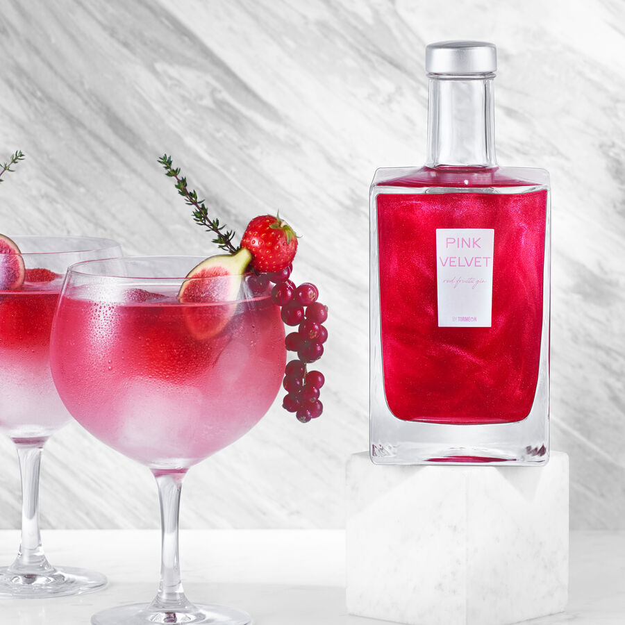 Le gin Pink Velvet scintille comme par magie lorsqu'on le secoue !
