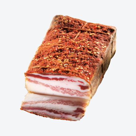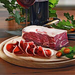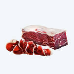 Les experts gastronomiques considèrent ce jambon original de Guijuelo, en Estrémadure, comme le meilleur du monde. Des directives de contrôle strictes garantissent un élevage presque sauvage des porcs noirs de la race Ibérico. Grâce à leur alimentation naturelle composée de préférence de glands issus des maquis, ils atteignent tardivement leur poids d'abattage. Cet élevage original et unique et une période de séchage et de maturation d'au moins 3 ans rendent le jambon super tendre et merveilleusement noiseté. La graisse est un composant essentiel du jambon prisé : son marbrage uniforme garantit une texture juteuse et une saveur incomparable, tandis que la couche de graisse extérieure protège la viande du dessèchement et préserve les arômes pendant la maturation. Morceaux d'environ 500 g, issus de la cuisse, désossés, pas toujours carrés. Notre Jamón Ibérico est commandé frais pour vous chaque semaine et n'est donc pas toujours disponible immédiatement.