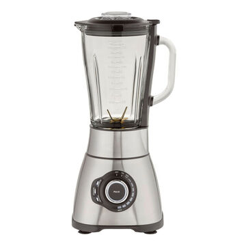 Corps en acier inoxydable, pichet en verre de 1,75 l avec graduation, 22 x 19 x 43,5 cm (l/p/h), poids 4 kg, 230V/1 800W, lames en acier inoxydable à revêtement titane, amovibles pour un nettoyage facile, verrouillage de sécurité et protection contre la surchauffe, assise sûre grâce aux pieds à ventouse, câble de 1 m, sécurité testée.