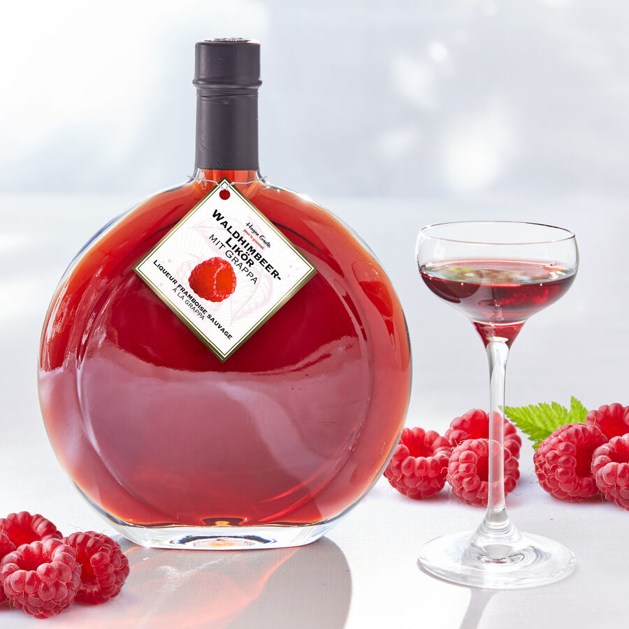 Liqueur de framboise sauvage : les framboises sauvages fruitées et les arômes de vanille subliment cette grappa raffinée