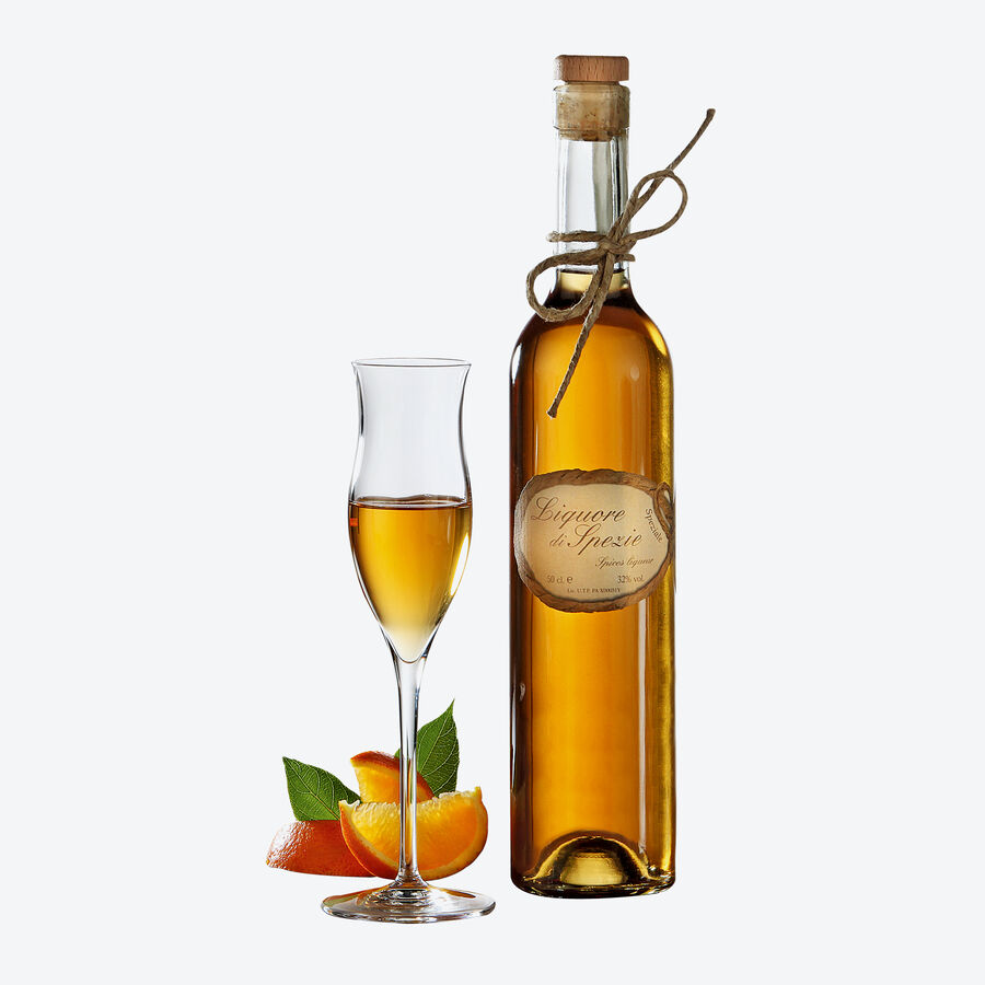 Liqueur sicilienne de Noël : à savourer telle quelle ou pour aromatiser des gâteaux, des desserts ou des boissons. La famille Russo cultive depuis plus d'un siècle, sur l'île de Sicile baignée de soleil, des fruits et des épices très aromatiques. À partir de ces ingrédients, elle confectionne, une fois par an et en quantité limitée, cette liqueur de Noël raffinée, au merveilleux parfum. Un alcool haut de gamme du meilleur distillat de raisin, des oranges douces, de la cannelle de Ceylan au parfum délicat et des clous de girofle en sont la base exquise. Le résultat : une liqueur à la profonde couleur ambrée et au bouquet moelleux prolongé. Au moment de Noël, elle est présente dans les meilleurs restaurants d'Italie comme apéritif frappé ou digestif pour accompagner l'expresso. Utilisez ses arômes merveilleusement odorants pour relever un chocolat chaud, un gâteau, une tarte, de la glace, une panna cotta ou des sauces brunes. Sans aucun colorant ni conservateur.