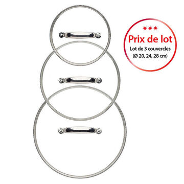 Lot de 3 couvercles en verre borosilicate (Ø 20, 24, 28 cm)