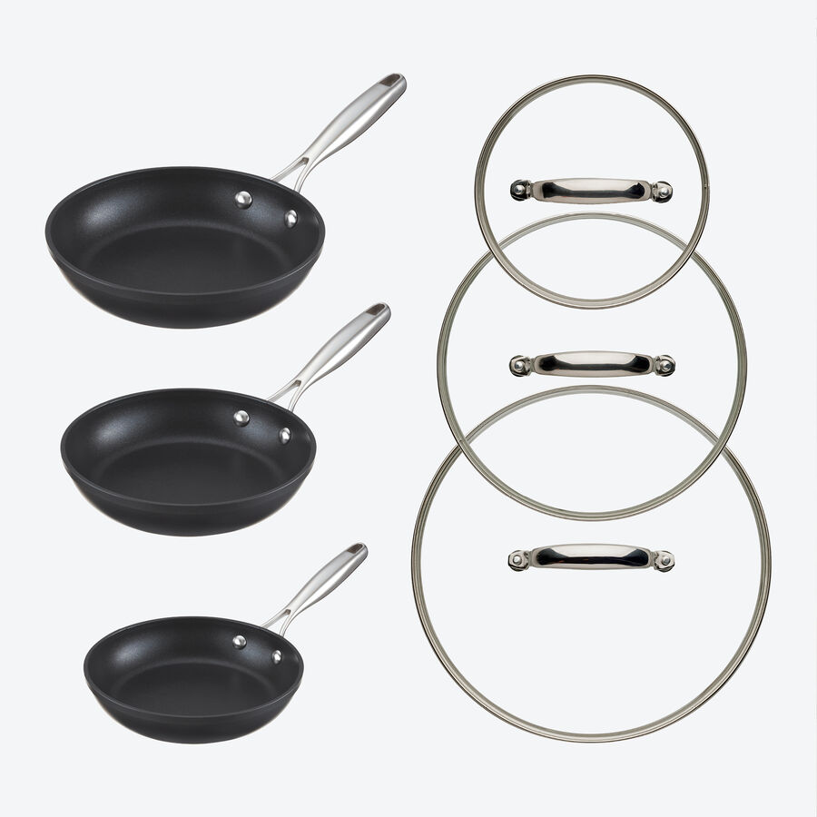 Lot de 3 : poêles professionnelles Hagen Grote en aluminium anodisé, avec couvercle
