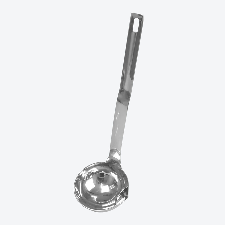Acier inoxydable, manche brossé, louche polie miroir, longueur 30,5 cm.