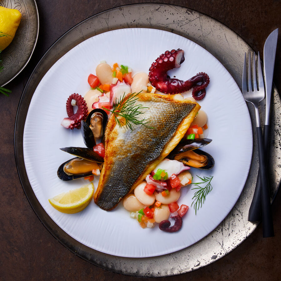 • Image du produit pour 'Loup de mer sur ragoût de haricots et de fruits de mer'