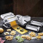 Lot de 5 pièces, machine à pâtes avec moteur et 3 rouleaux (spaghettis, tagliatelle, tagliolini, mafaldine)
