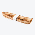 Ravier en bois d'olivier, 40 x 10 x 8 cm (l/p/h), 4 renfoncements de Ø 8,5 cm