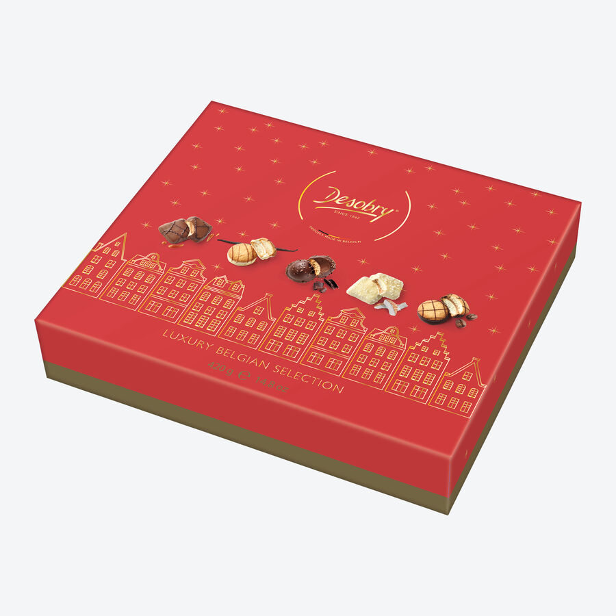 "Sucre, farine de blélaitière anhydre, émulsifiant : lécithine de soja, arôme naturel de vanille), matières grasses végétales (palme, coprah, palmiste), chocolat blanc 12,9 % (sucre, beurre de cacao, lait entier en poudre, émulsifiant : lécithine de soja, arôme naturel de vanille), chocolat au lait 6 % (sucre, beurre de cacao, lait entier en poudre, pâte de cacao, lactose (lait), émulsifiant : lécithine de soja), noix de coco, caramel salé de Guérande (sirop de glucose, sucre, matières grasses végétales (palme, palmiste), beurre (lait), eau, crème liquide (matière grasse...) (lait), caramel salé de Guérande (sirop de glucose, sucre, matières grasses végétales (palme, palmiste), beurre (lait), eau, crème liquide (matière grasse...) : 31 %) (lait), sel de Guérande (1,25 %), émulsifiant : lécithine de soja), huiles végétales (colza, tournesol), poudre de cacao dégraissée, blancs d'oeufs de poules élevées en plein air, lactosérum (lait), lait écrémé en poudre, oeufs de poules élevées en plein air, éclats de fèves de cacao torréfiées, lactose (lait), sirop de sucre inverti, lait entier en poudre, farine de graines de soja, arômes naturels de café, poudres à lever (carbonates de sodium, carbonates d'ammonium, diphosphates), sel, extrait de vanille, arômes naturels, émulsifiant : lécithine de soja. Chocolat noir : extrait sec de cacao 46 % minimum. Chocolat au lait : cacao 31 % minimum. Poudre de cacao allégée : beurre de cacao 10 %. Peut contenir des traces de fruits à coque.