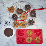 Économisez le temps fastidieux du façonnage. Il suffit d'étaler la pâte à pain d'épice dans les cavités, de cuire et, après refroidissement, de garnir de chocolat au lait ou noir. Grâce à la surface antiadhésive, les biscuits en pains d'épice se démoulent facilement et ne collent pas.