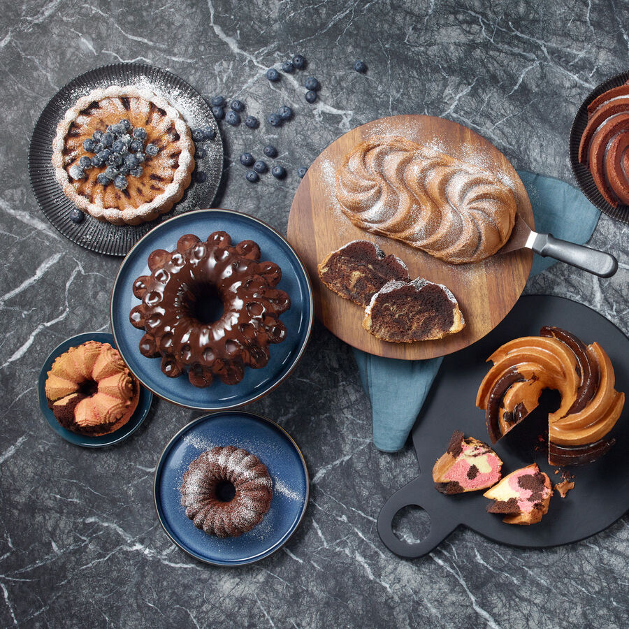 Notre moule en aluminium moulé à paroi épaisse combine conductivité thermique maximale et répartition uniforme de la chaleur pour des gâteaux parfaitement cuits et merveilleusement dorés. Le revêtement double couche antiadhésif permet un démoulage impeccable, les fins détails restant intacts. Vous y réussirez facilement de beaux gâteaux, sucrés ou salés.