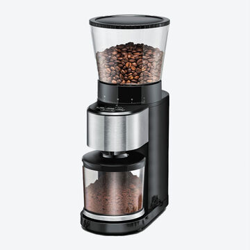 Le puissant broyeur à cône en acier inoxydable du moulin à café électrique broie les grains de manière uniforme et en douceur. 39 degrés de mouture sont proposés : de très fin pour l'expresso jusqu'à grossier pour la cafetière à piston. 4 fonctions supplémentaires sont à votre disposition : dosage 1 à 12 tasses, durée de mouture jusqu'à 60 secondes, poids de 7 g (1 tasse) à 100 g, fonctionnement manuel. Il est possible de moudre directement dans le porte-filtre de la machine à expresso.