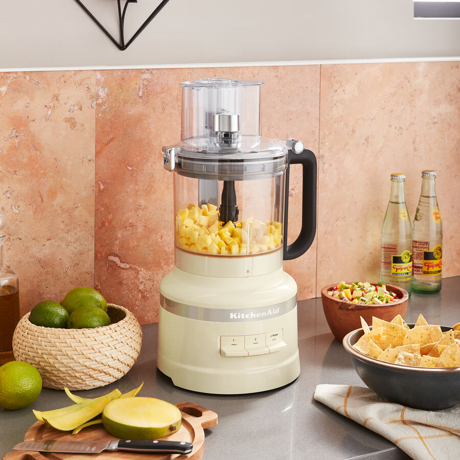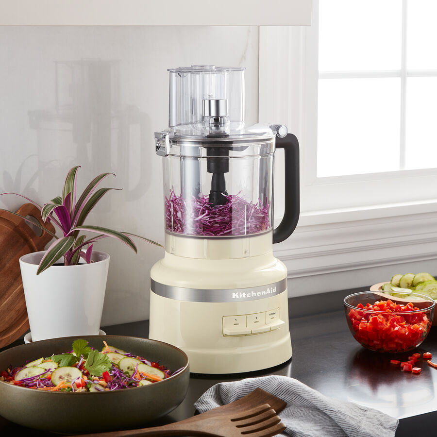 - Hache, râpe, râpe, tranche, mélange, réduit en purée