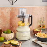 Qualité, fonctionnalité, durabilité - la réputation des appareils KitchenAid n'est plus à faire. Hacher, râper, trancher, découper, mélanger, réduire en purée ou même pétrir la pâte : ce robot culinaire de haute qualité s'acquitte avec brio des tâches intenses en cuisine. Grâce à la technologie de pointe des lames, vous pouvez facilement donner aux légumes, au fromage à pâte dure, aux noix et autres aliments la forme souhaitée. Les disques de coupe de haute qualité produisent des tranches de 1-6 mm, des cubes précis (12 mm) et râpent moyennement à finement. L'épaisseur de coupe peut également être ajustée pendant le fonctionnement. Vous pouvez utiliser le robot tout aussi parfaitement pour réduire en purée, battre les blancs d'oufs et même pétrir la pâte levée. Grâce au système de rangement tout-en-un, tous les accessoires trouveront leur place dans le bol de travail. Le puissant moteur à induction de 400 watts fonctionne à 750 ou 1 600 tours ou en mode intervalle (2 000 tours), selon les besoins.