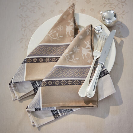 Les motifs hivernaux détaillés créent une atmosphère joyeuse de Noël. Cette collection de linge de table saisonnier est fabriquée dans des couleurs élégantes par une manufacture traditionnelle de tissage du sud de la France. Le pur coton lourd préserve les surfaces délicates.