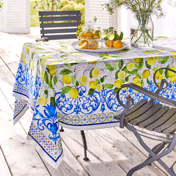 Capturés sur du lin précieux dans une manufacture traditionnelle toscane, des motifs typiquement siciliens de citrons enrichissent votre table de couleurs fraîches et d'une ambiance méditerranéenne. Ce linge de table de haute qualité est fabriqué dans une tisseranderie existant depuis 1947 près de Florence. Bords solidement et soigneusement cousus, résistant et adapté à un usage quotidien, protège les surfaces fragiles.