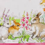 • Motif festif avec des lapins sur une prairie printanière colorée