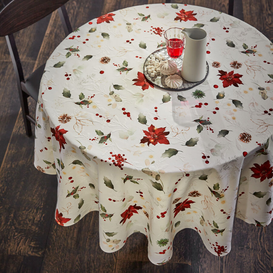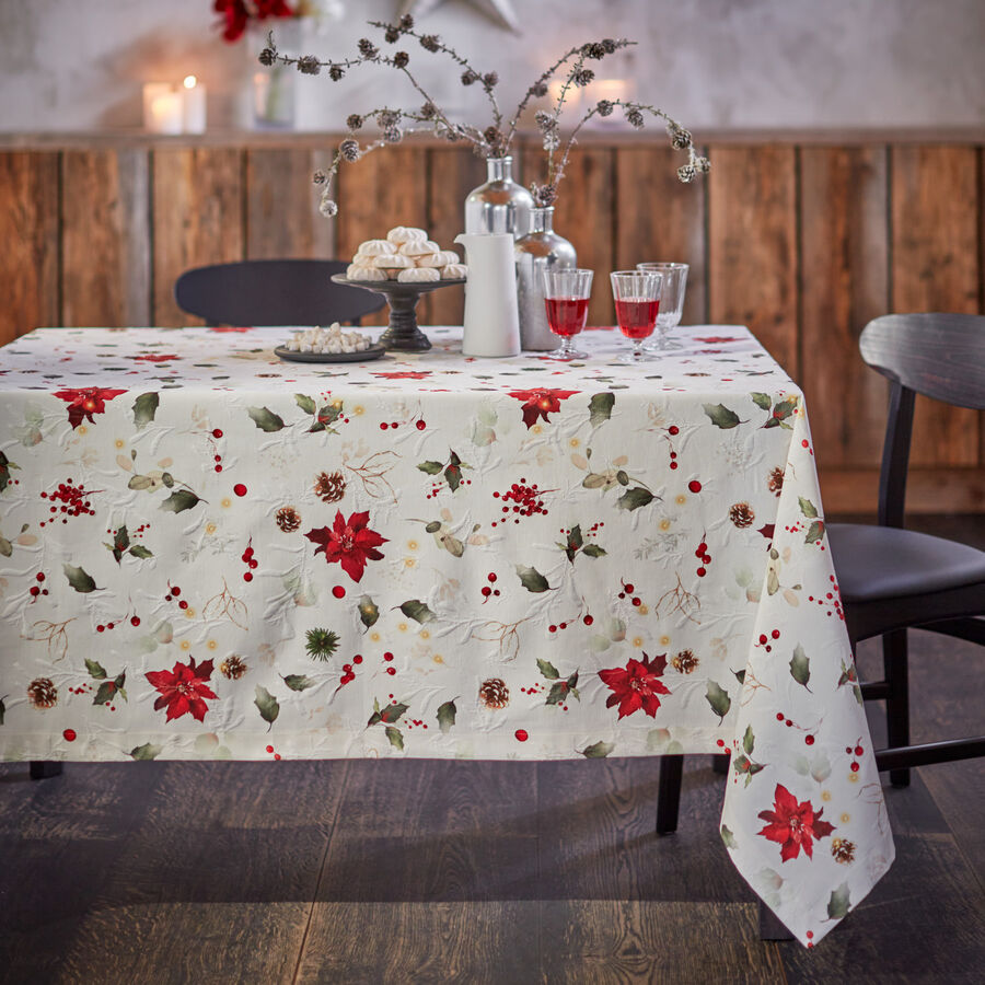 Avec son motif classique de poinsettia, l'impression numérique aux couleurs intenses crée comme par magie une ambiance de fête. Le tissu matelassé confère à la nappe une tridimensionnalité du plus bel effet. Sur les métiers à tisser jacquard classiques, sa structure en relief est créée en utilisant plusieurs fils de trame, formant une sorte de coussin entre le tissu supérieur et inférieur. Le coton pur et lourd protègera les surfaces fragiles. Les couleurs brillantes offriront le cadre parfait pour vos compositions de Noël. 100 % coton, finition de qualité, lavage délicat à 40 °C.