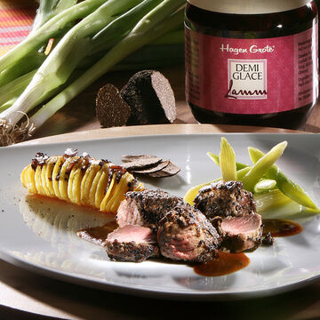 • Image du produit pour 'Noisettes d'agneau truffées avec un éventail de pommes de terre'