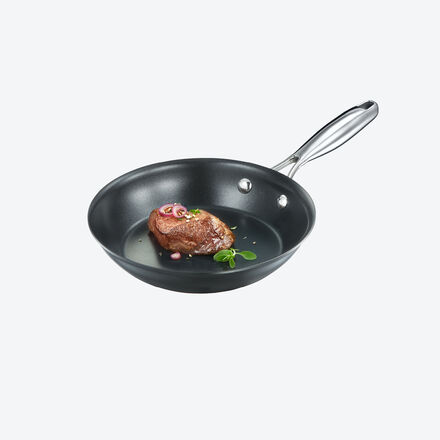 Un noyau multicouche en cuivre-aluminium fait de ces poêles un outil professionnel de précision. La structure supraconductrice de la poêle transmet les changements de température au contenu de la poêle aussi rapidement que précisément. Cela permet des préparations particulièrement rapides et exactes. Le revêtement antiadhésif multicouche performant est quatre fois plus résistant. Le corps de la poêle anodisé dur est beaucoup plus robuste que l'acier inoxydable. La poêle de précision Hagen Grote a plus que fait ses preuves lors d'une utilisation continue dans la haute gastronomie. Elle offre au cuisinier amateur ambitieux une technologie de pointe en matière de cuisine, dans un design de haut niveau professionnel.