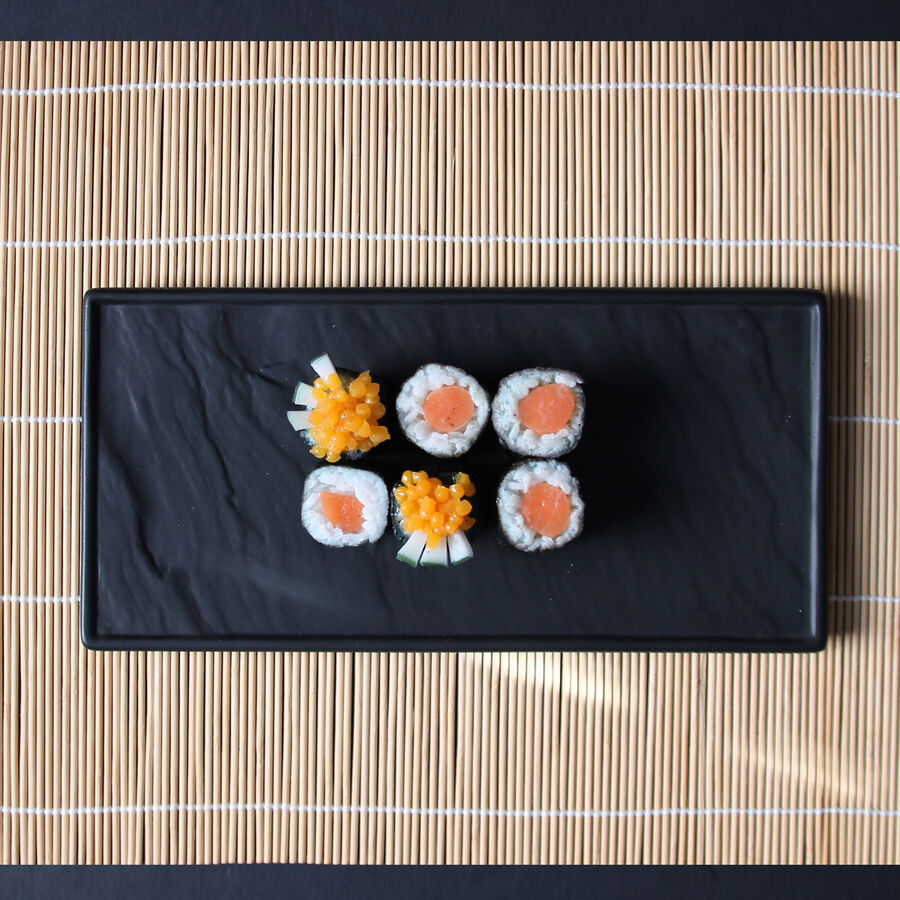 Plaque carrée 25,5 x 25, 5 x 1,5 cm (L/P/H), poids 1,2 kg, plaque rectangulaire 25,5 x 12 x 1,5 cm (L/P/H), poids 590 g, empilables, lavables au lave-vaisselle.