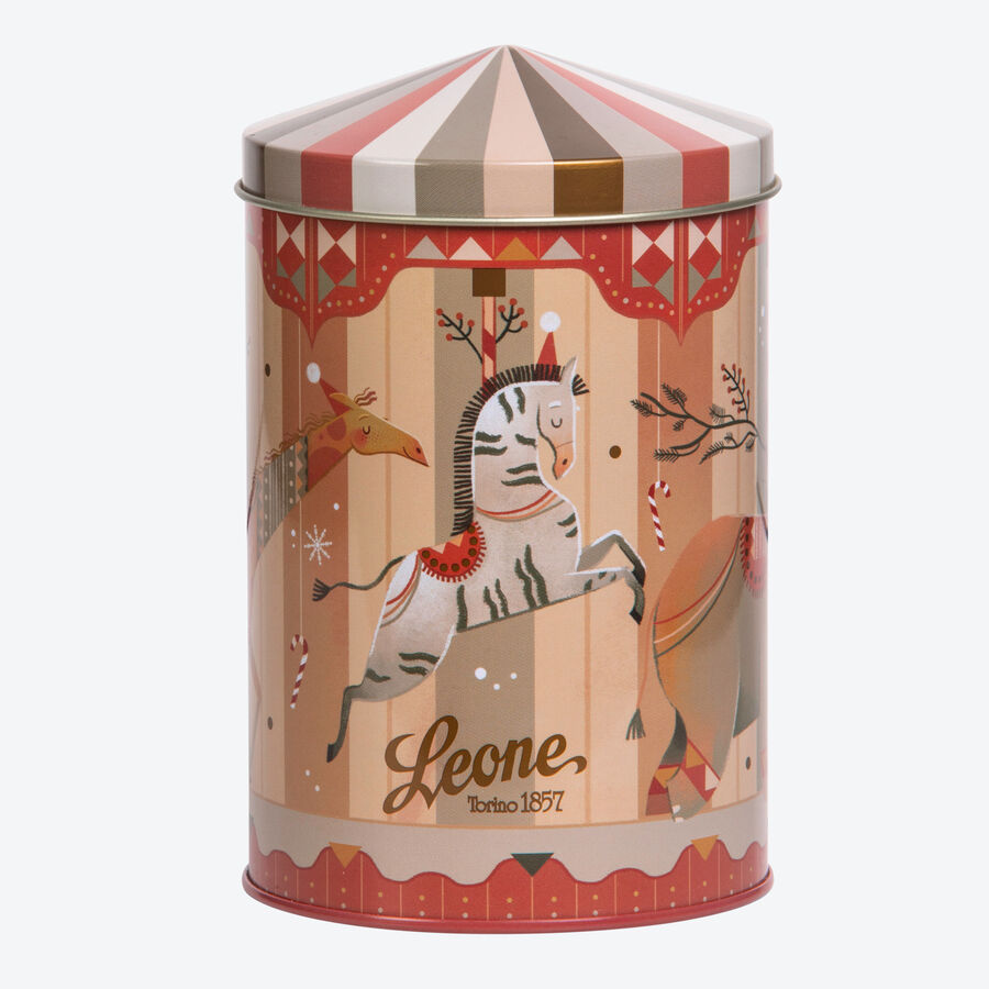 • Dans une boîte métallique nostalgique en forme de carrousel
