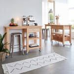 Hagen Grote Îlot de cuisine, petit, 135 x 60 x 90 cm (l/p/h), hêtre massif, poignées en acier inoxydable, 1 panier, avec roulettes