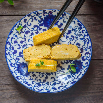 Le tamagoyaki, la célèbre omelette carrée, fait partie du petit-déjeuner japonais classique. Pour 4 portions, assaisonner et battre légèrement 3 oeufs. Répartir ¼ du mélange dans la poêle graissée. Juste avant que le mélange d'oeufs ne prenne, le rouler sur un côté à l'aide d'une spatule. Ajouter un autre ¼ du mélange dans la poêle et faire frire en une fine couche. Puis enrouler autour du rouleau précédemment fait. Répéter le processus avec les 2 portions de pâte restantes. Frire à nouveau brièvement le rouleau fini pour que tout se tienne bien. Laisser ensuite refroidir les tamagoyaki et les couper en petits morceaux.