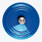 Depuis 1925, Le Creuset fabrique en France des cocottes et des poêles de haute qualité en fonte émaillée. Elle absorbe rapidement la chaleur, la retient longtemps et la restitue de façon régulière. Avec cette cocotte, vous parvenez parfaitement à saisir à haute température tout comme à mijoter délicatement sur feu doux et régulier. Vous réussissez parfaitement les potages, les ragoûts, les potées et les rôtis, tout comme les plats gratinés. Les propriétés sensationnelles des cocottes et des poêles Le Creuset sont non seulement appréciées des professionnels de la cuisine française, mais aussi de la jeune génération internationale des jeunes chefs renommés. Les grandes poignées et le bouton en acier inoxydable assurent une manipulation aisée, même avec les maniques. Un stabilisateur de couvercle empêche le claquement et le glissement. L'émaillage magnifique et brillant prédestine cette batterie au service.